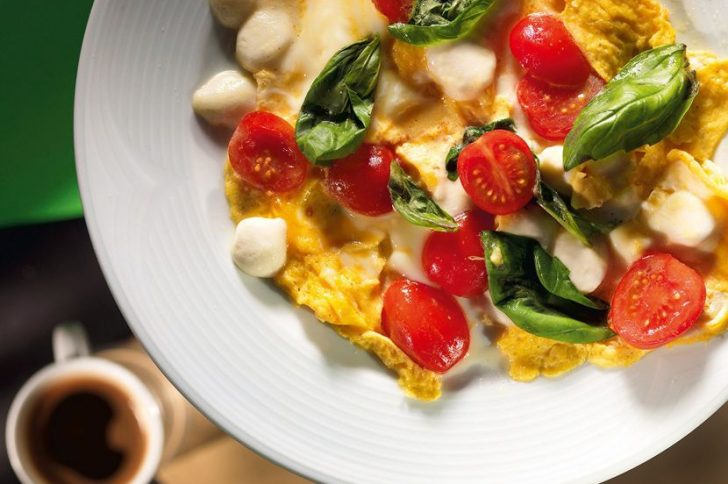 - яичница или омлет (на одно яйцо четверть стакана молока): они дополняются помидорами черри, нарезанным зеленым луком, вареной куриной грудкой, цуккини, сладким перцем, шпинатом или тофу. Овощи желательно протушить, чтобы в блюде не было лишней жидкости;